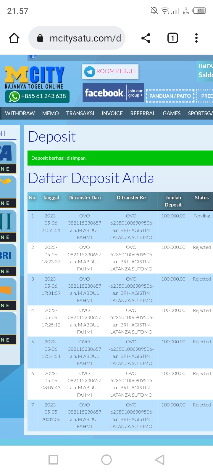 Padahal saya sudah transfer ke rekening BRI dari ovo