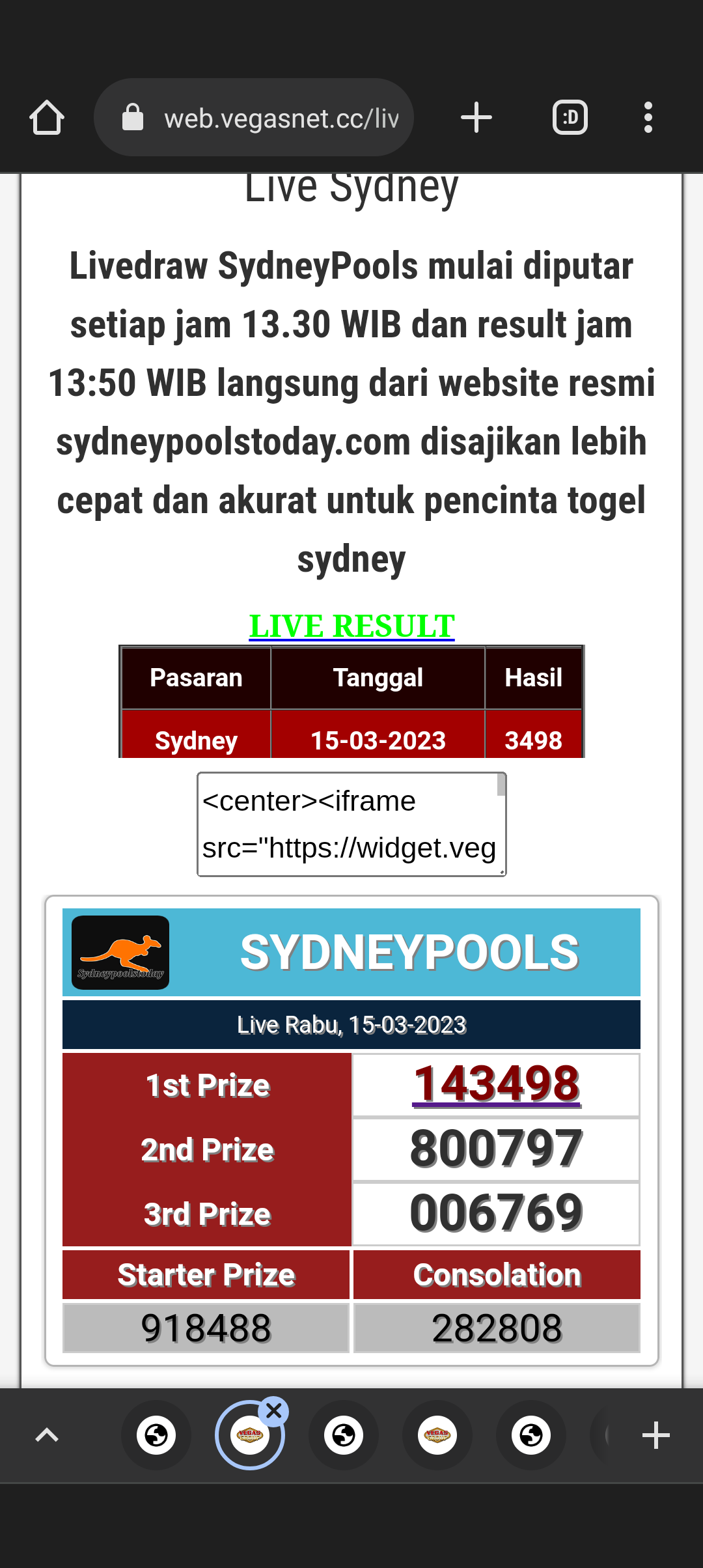 Selamat Bergabung kembali bersama vegasnet dalam room Prediksi Sydney. Untuk kenyamanan dalam berprediksi, kami melarang adanya posting nomor WA, Web atau FB. Vegasnet juga tidak pernah menjual prediksi, software, atau aplikasi togel lainnya. Berprediksilah secara damai dan elegan. Terima kasih telah menjadi pengunjung setia vegasnet